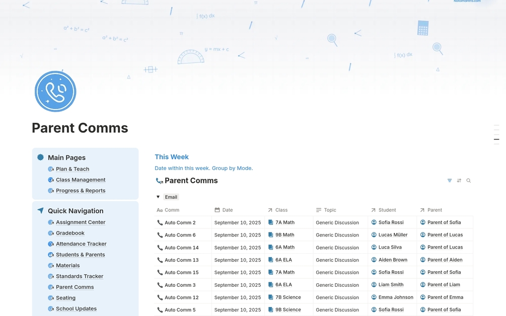 Professional Parent Communication: Log every phone call, email, and meeting with parents. Track follow-ups and never miss important conversations about student progress.